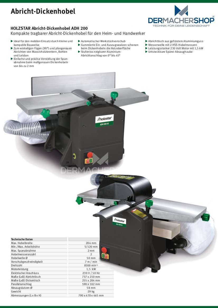 - Hobelbreite max. 204 mm