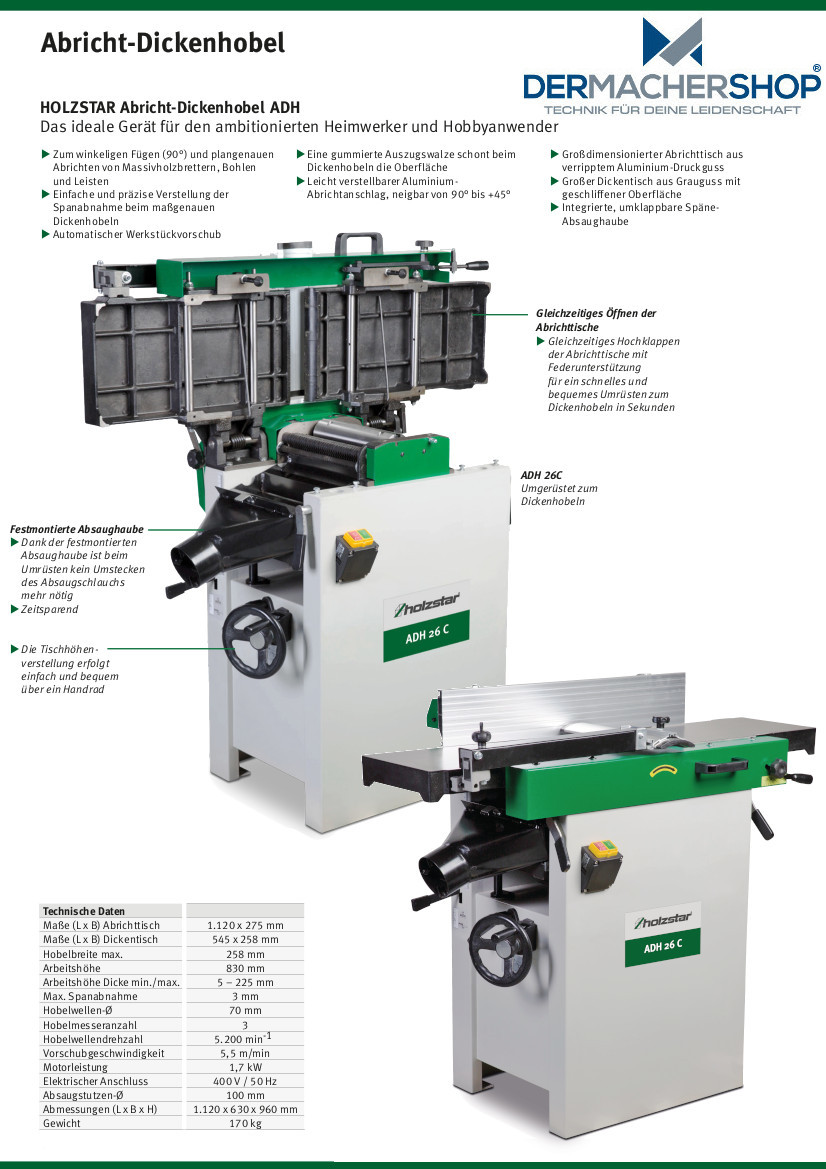 - Hobelbreite max. 258 mm