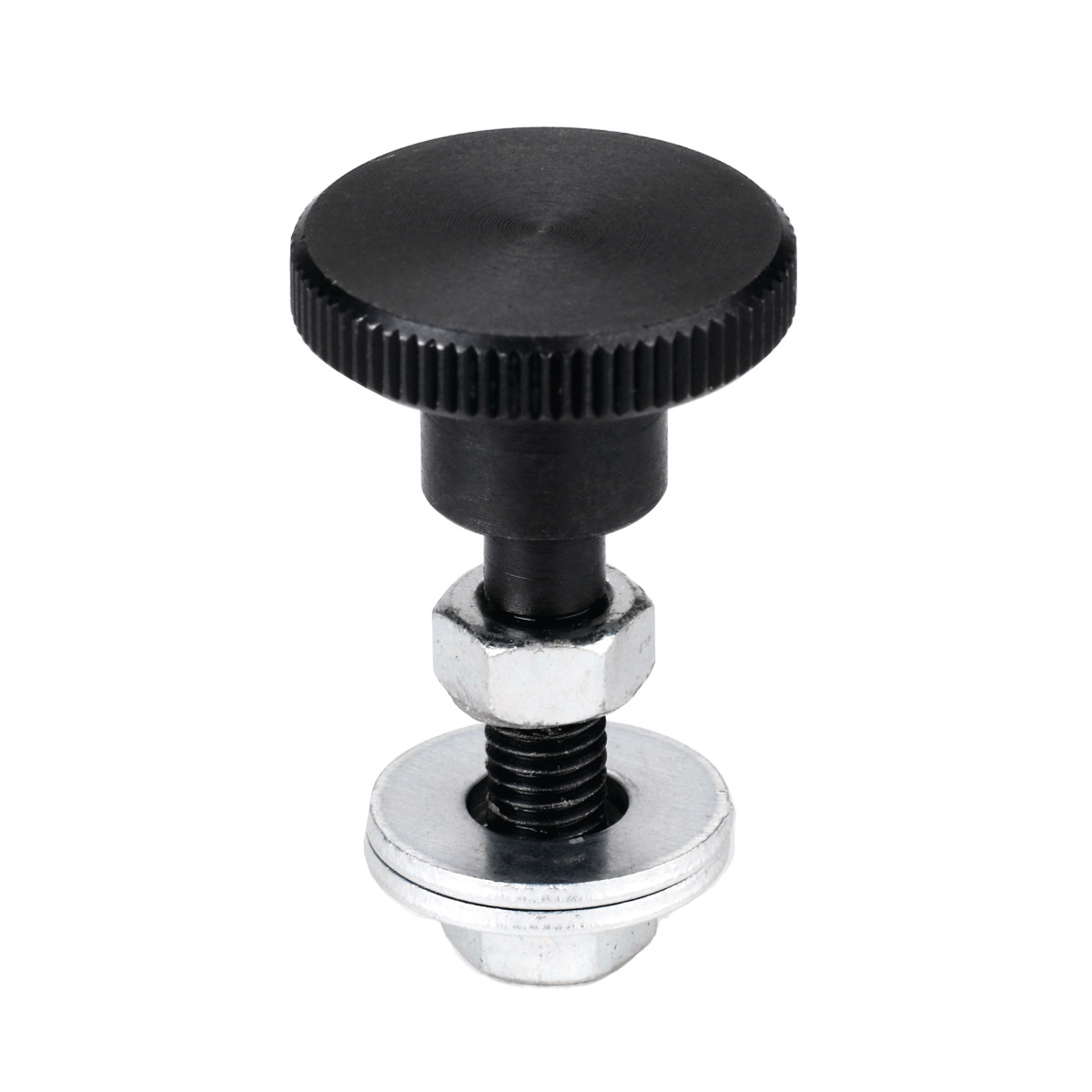 BESCHREIBUNG: - Anschlagdurchmesser 30 mm, Länge 48 mm, Gewinde M8 - 2 Muttern und 2 Unterlegscheiben Ø 30 mm im Lieferumfang (Klemmelement und Winkel im Lieferumfang dieses Artikels nicht enthalten)