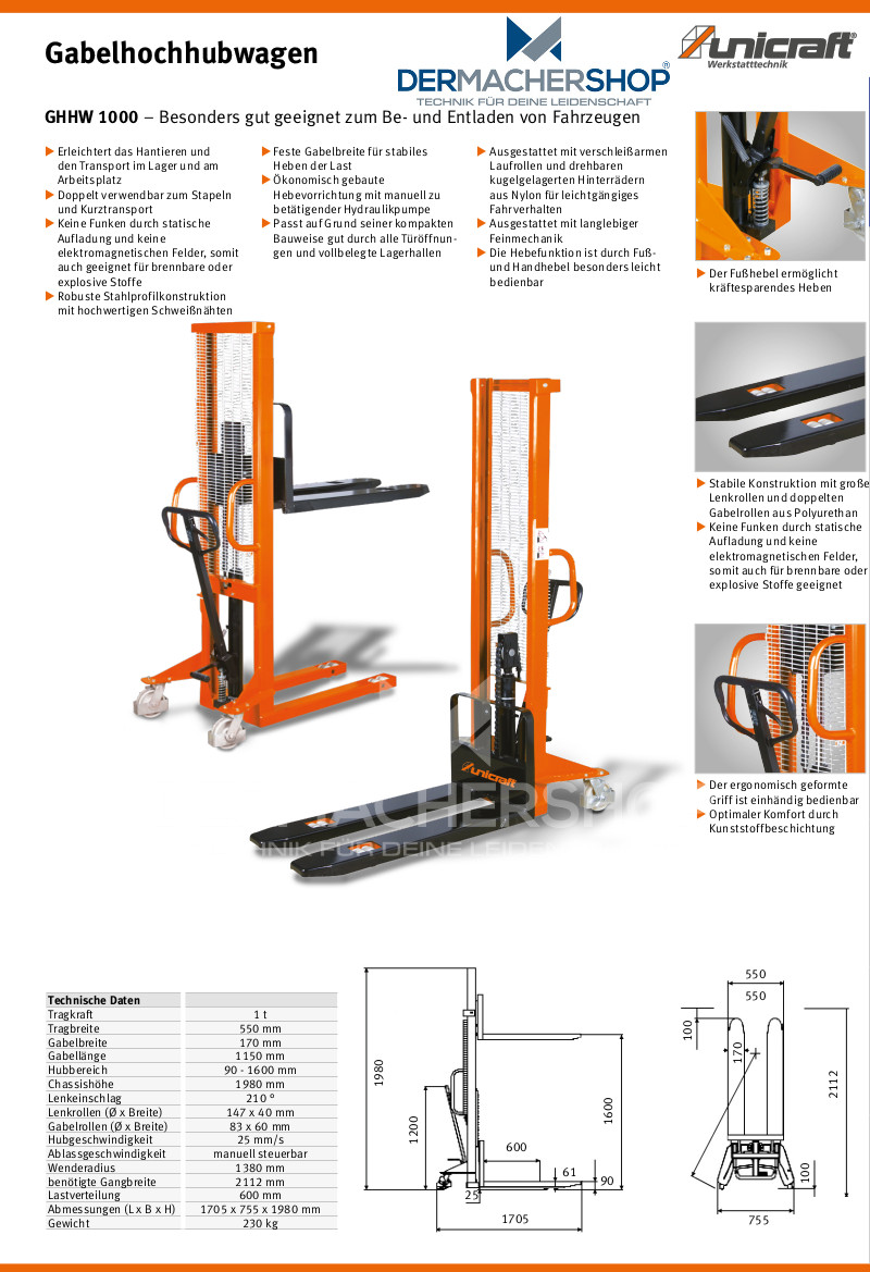 Gabelhochhubwagen Unicraft GHHW 1000