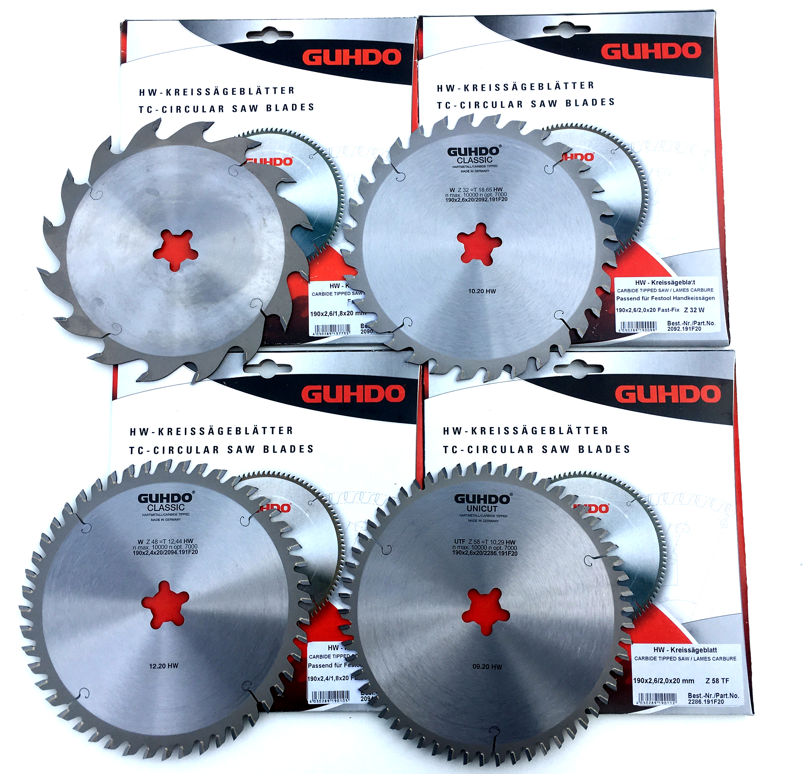 GUHDO HW-Handkreissägeblatt-Set 190 x 2,6/1,8 x 20 Z16/32/58 mit Sternbohrung