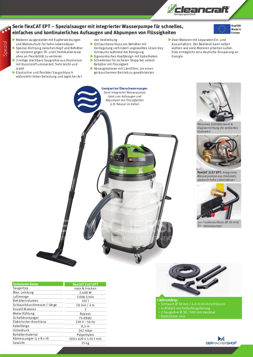Nass-/Trockensauger mit Wasserpumpe Cleancraft flexCAT 2107 EPT