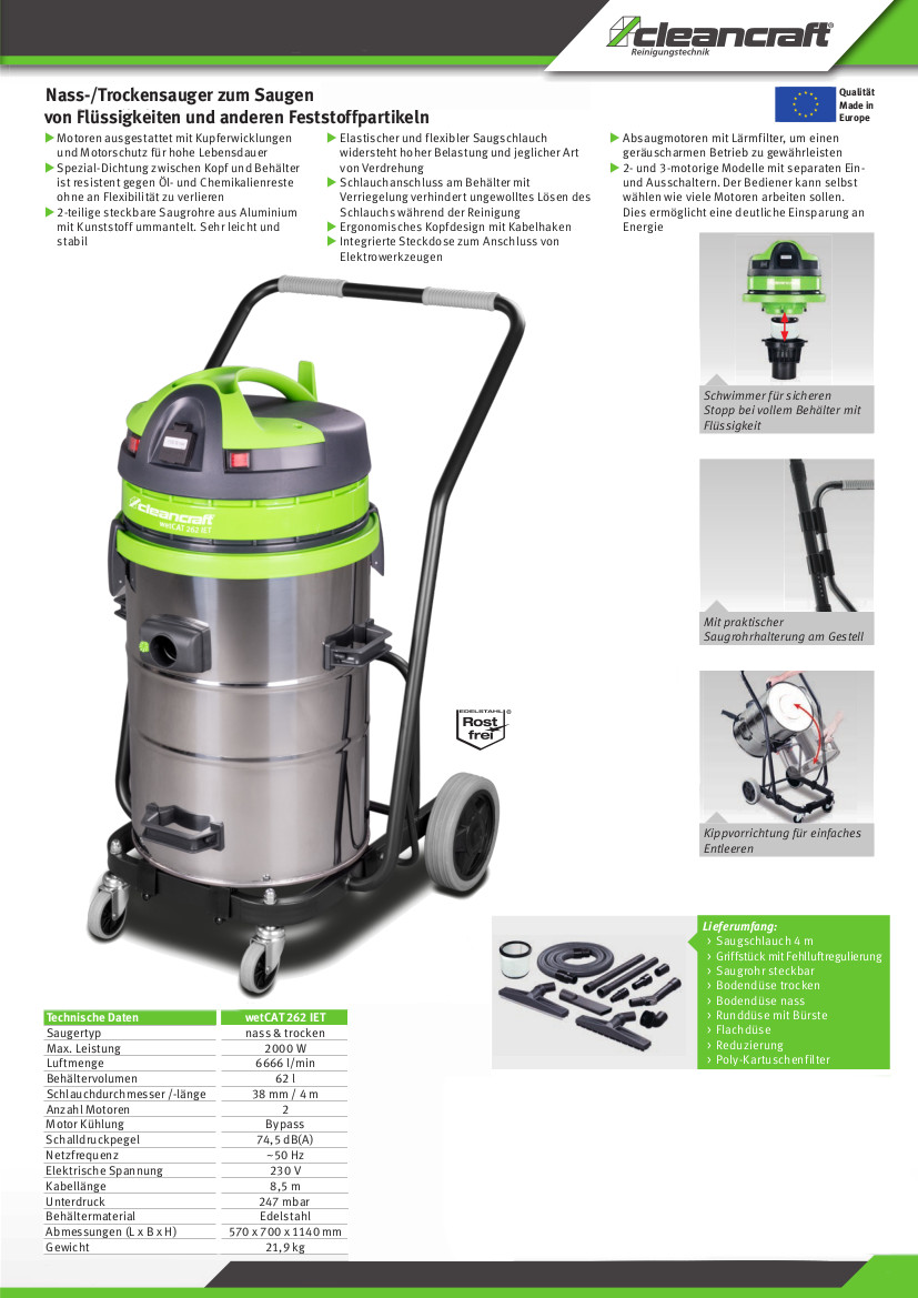 Nass-/Trockensauger Cleancraft wetCAT 262 IET mit praktischem Kippfahrgestell