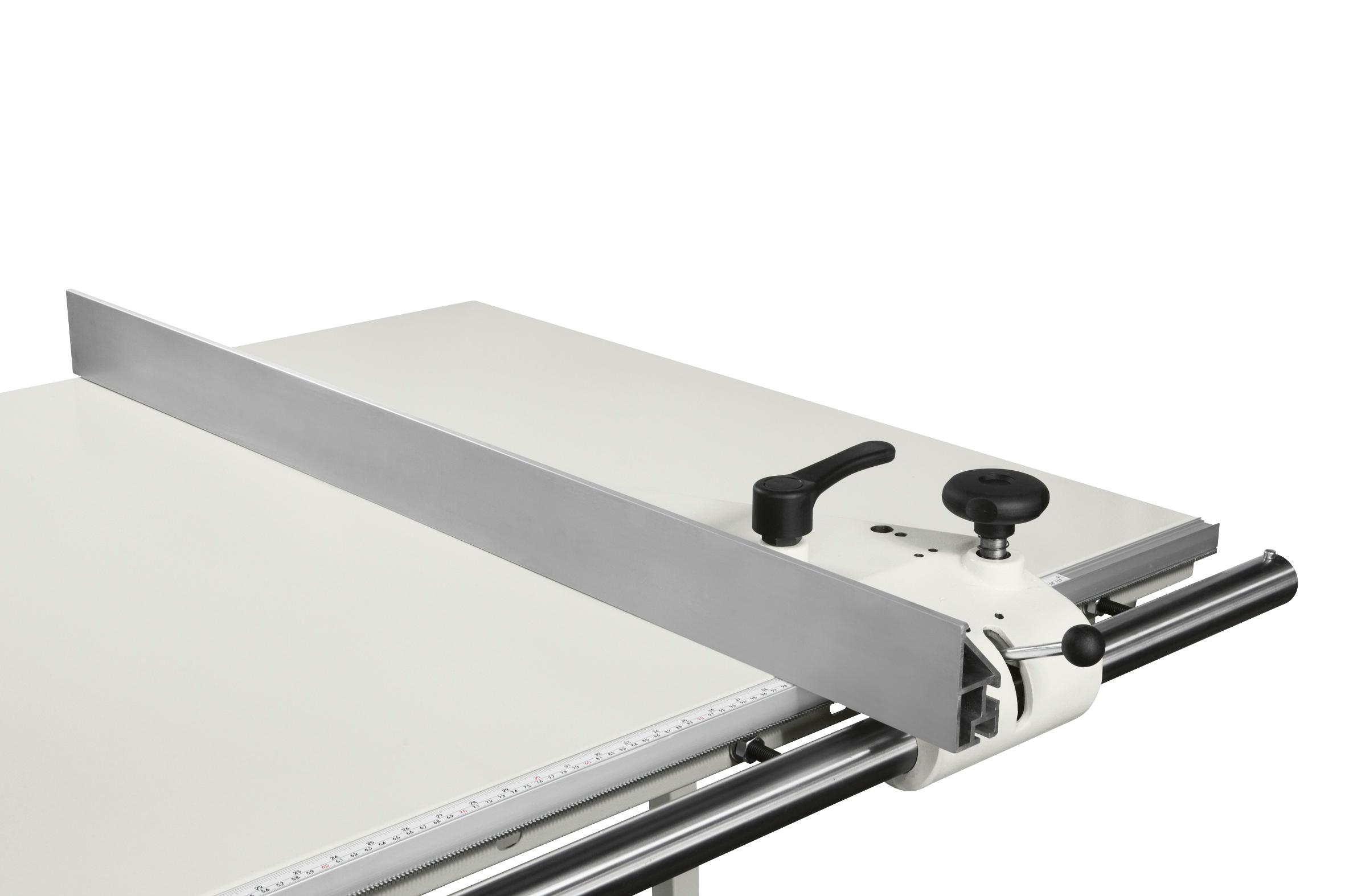 und Format-Schiebeschlitten aus eloxiertem Aluminium.