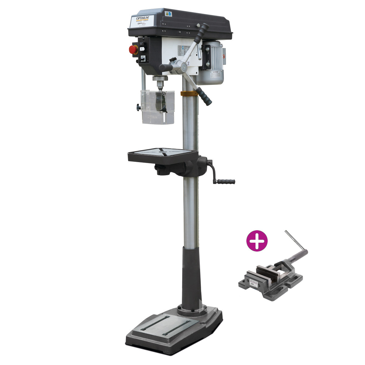 Säulenbohrmaschine Optimum OPTIdrill DQ 32 Aktions-Set inkl. Schraubstock