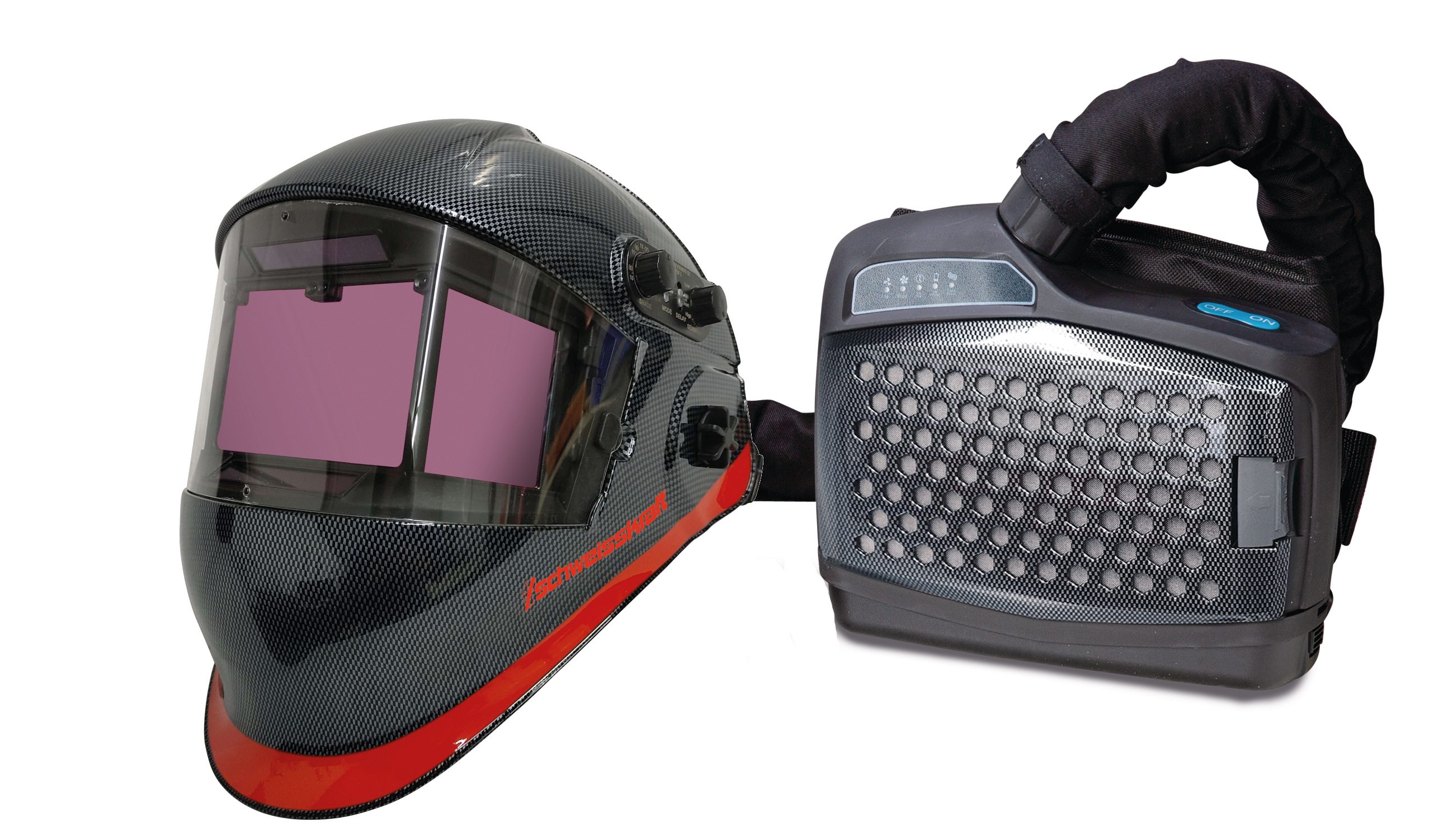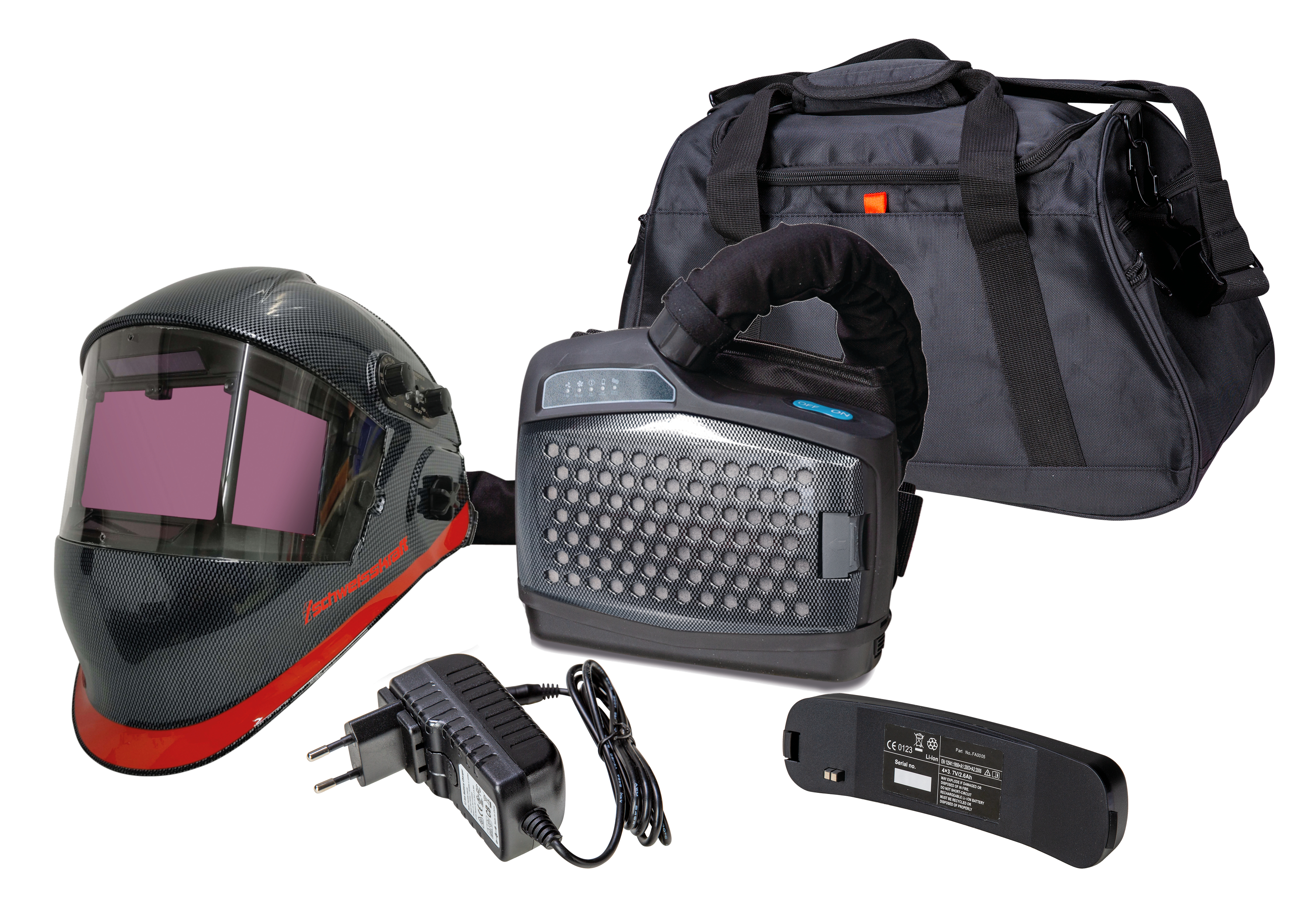 - Gewicht Schweißhelm + Gebläseatemschutz ca. 2,8 kg
