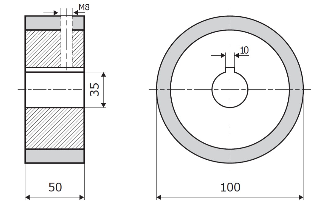 - Bohrungs-Durchmesser = 35 mm mit Klemmnut 10 mm