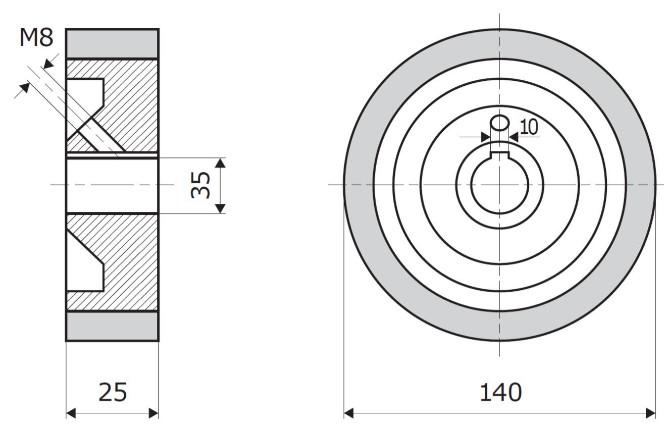 Vorschubrolle 140x25x35mm; 10V; 60 ShA; weiß; passend für Weinig