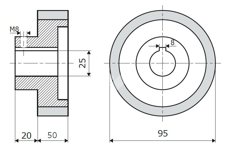 - Bohrungs-Durchmesser = 25 mm mit Klemmnut 8 mm